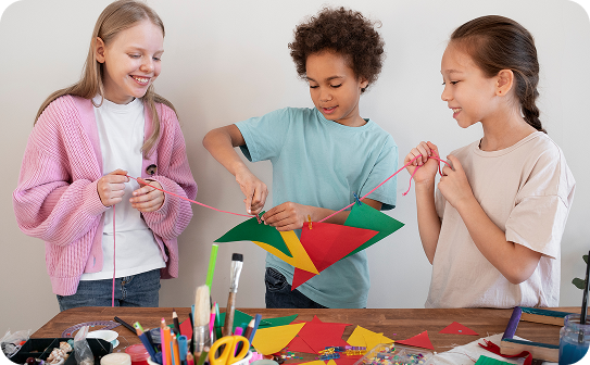 Art is used as a tool for expression, imagination, and design thinking, helping children turn ideas into creations.